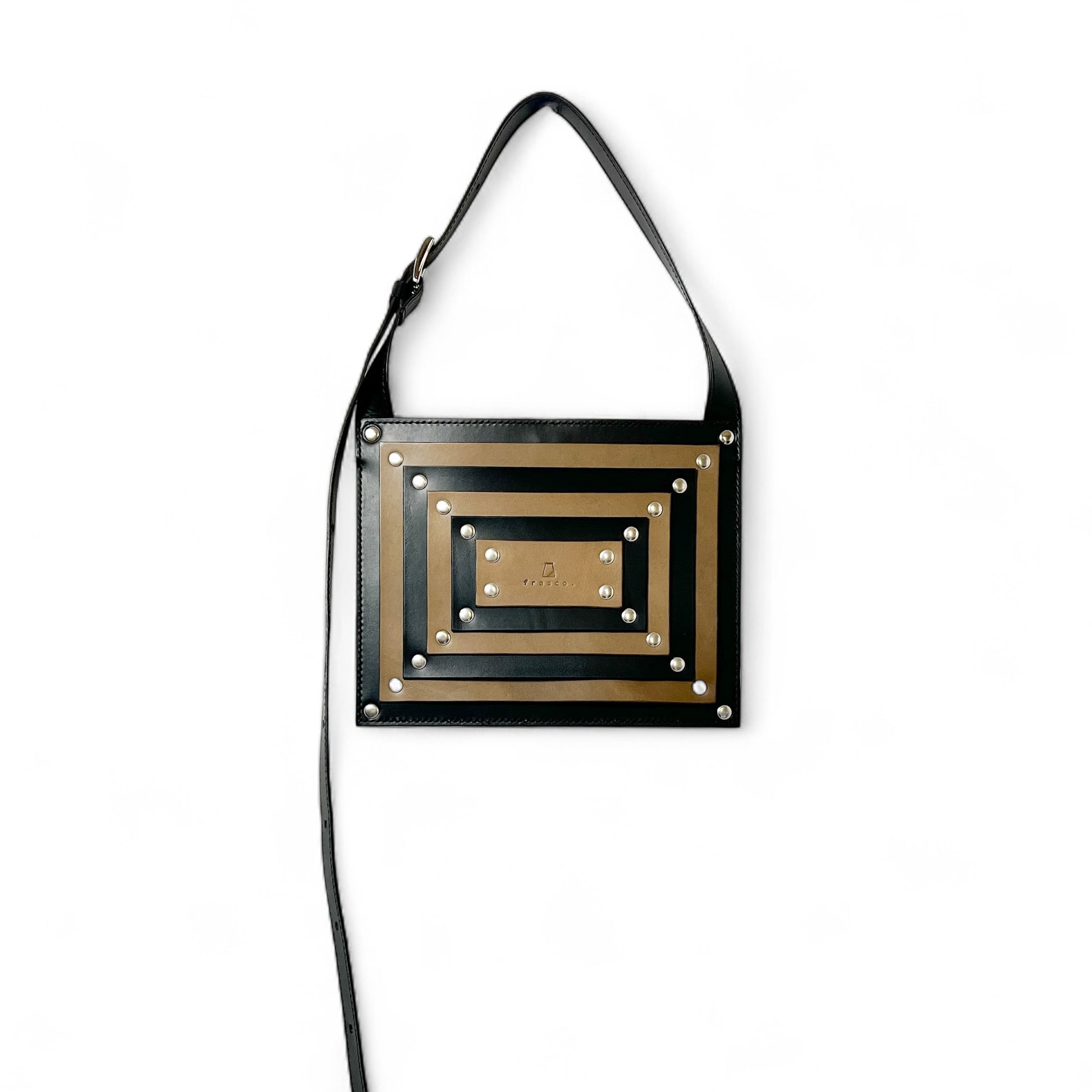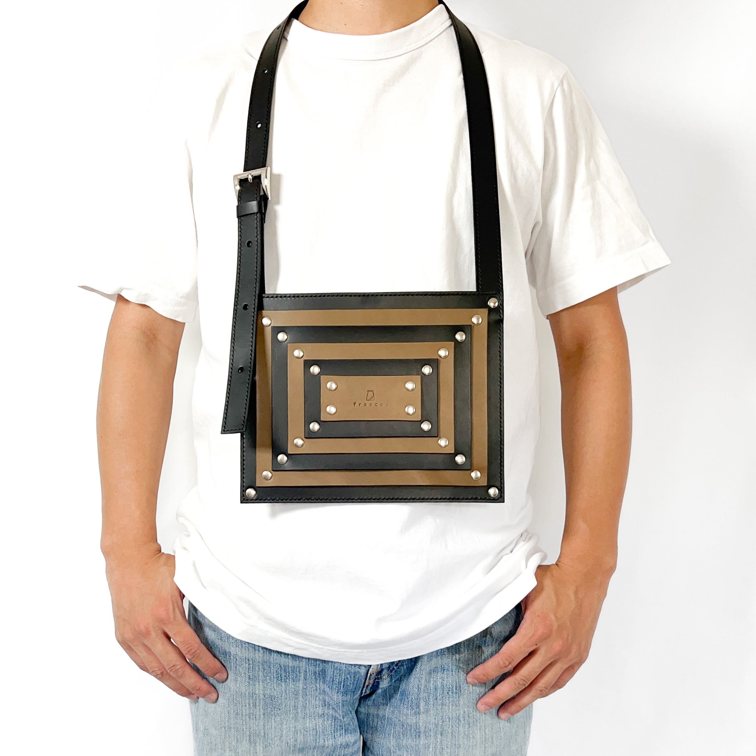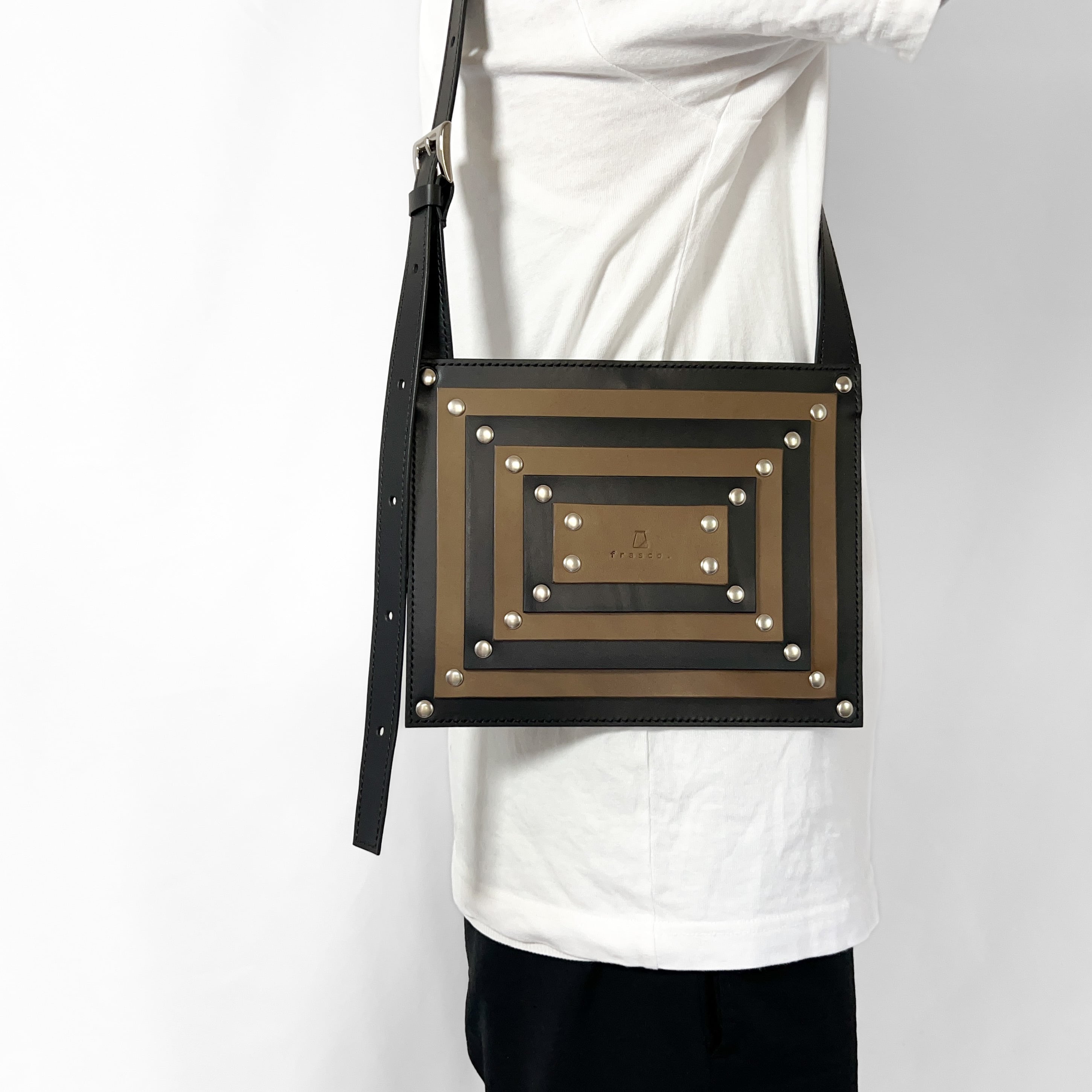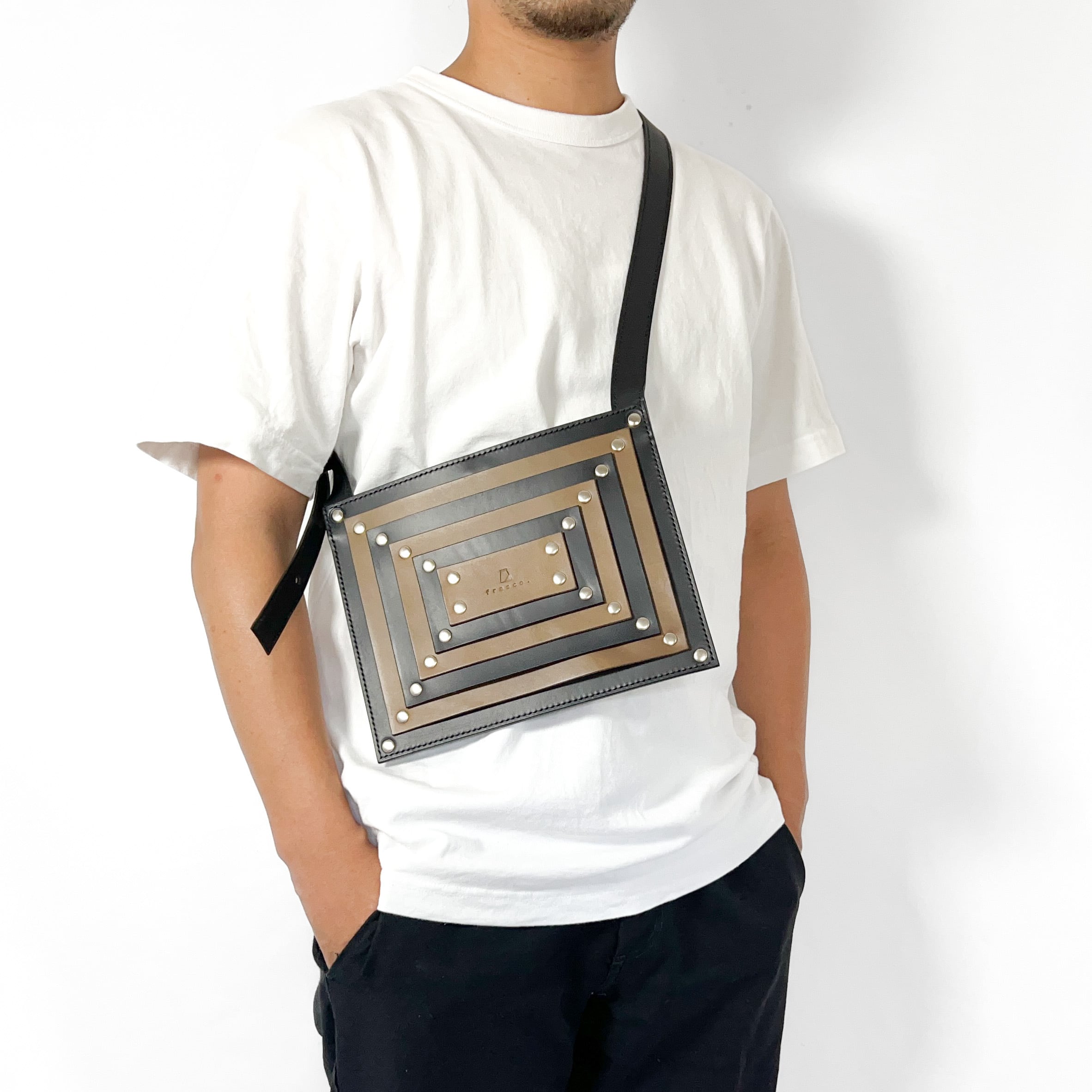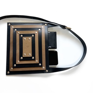 黒とグレーのイタリアンレザーで仕立てたパターンミニバッグ