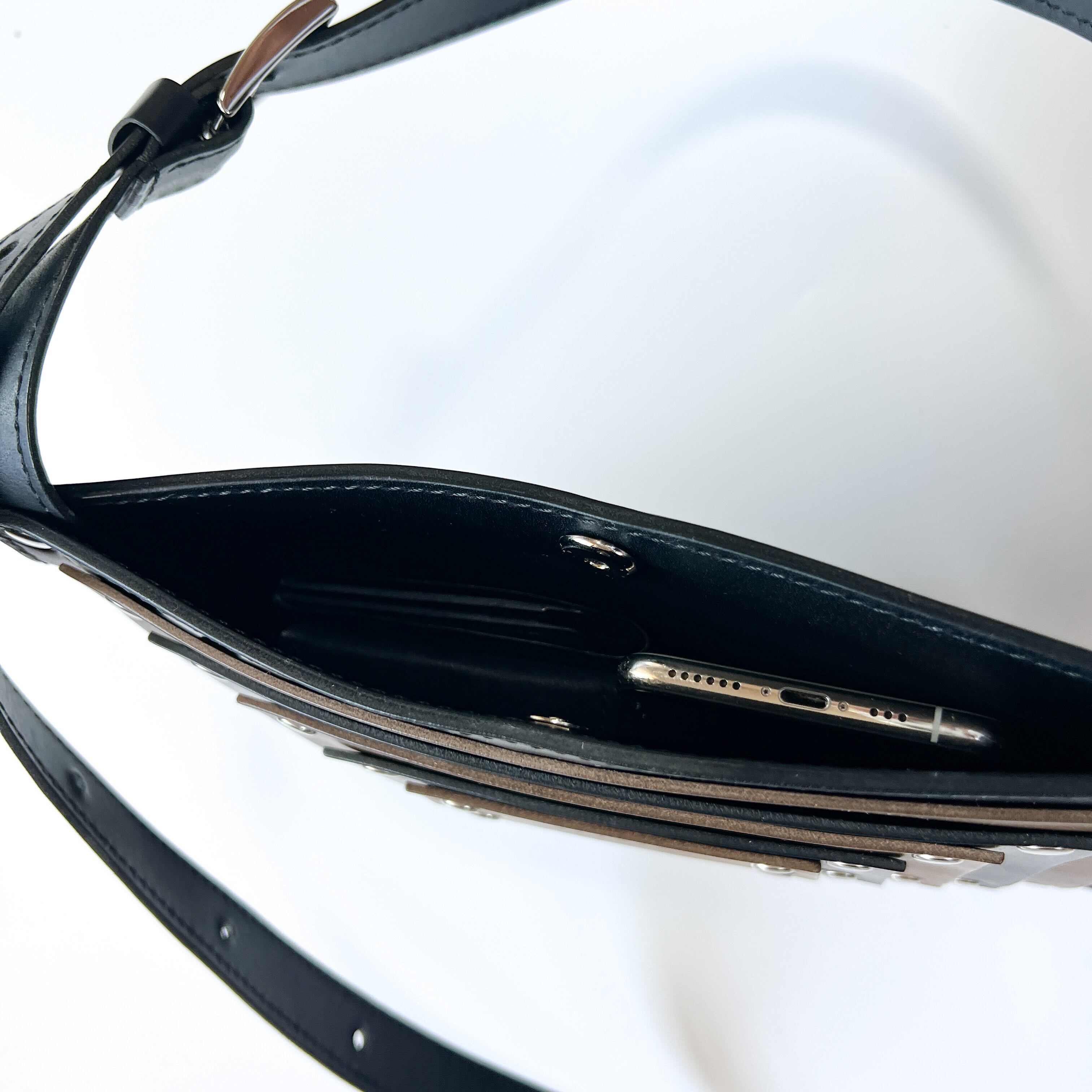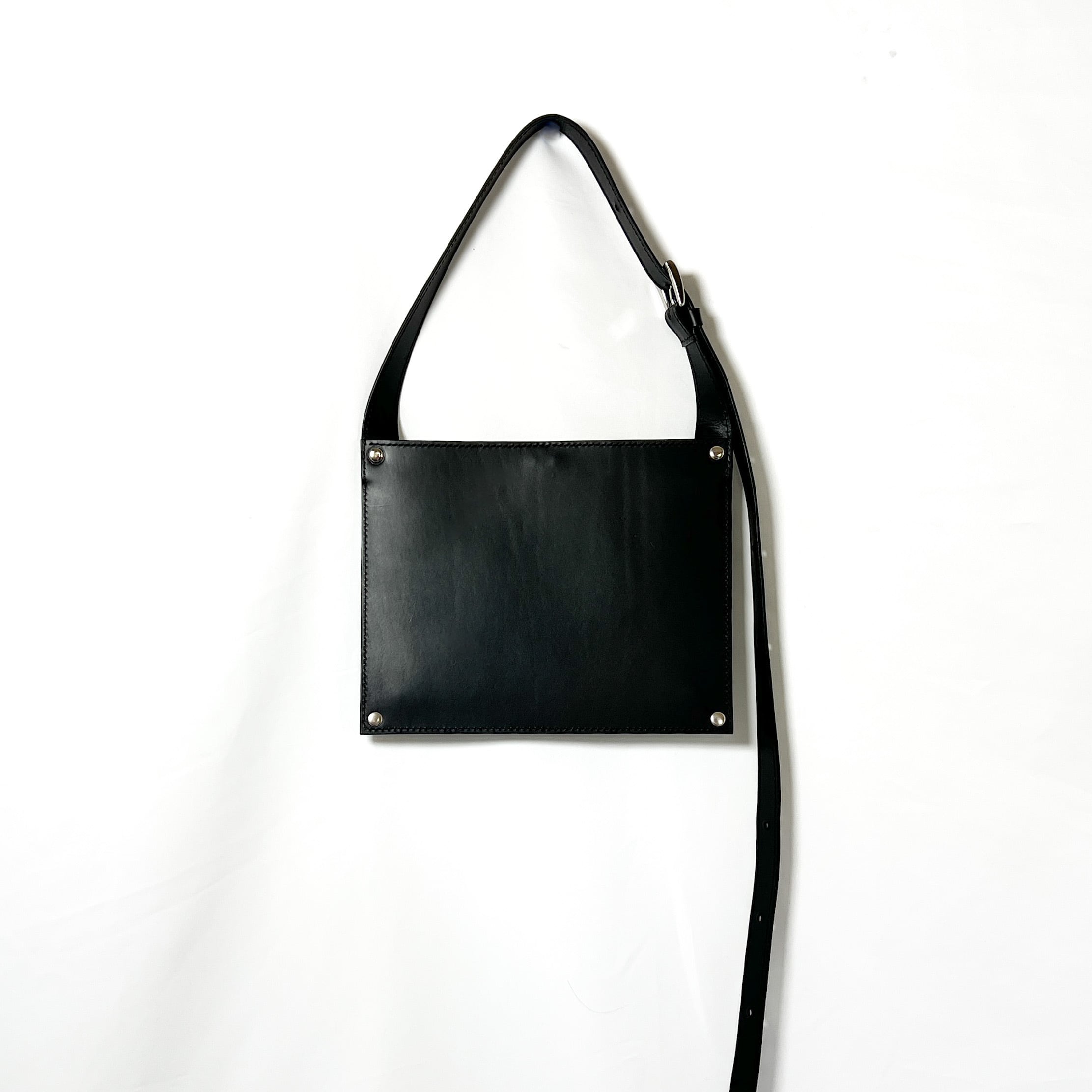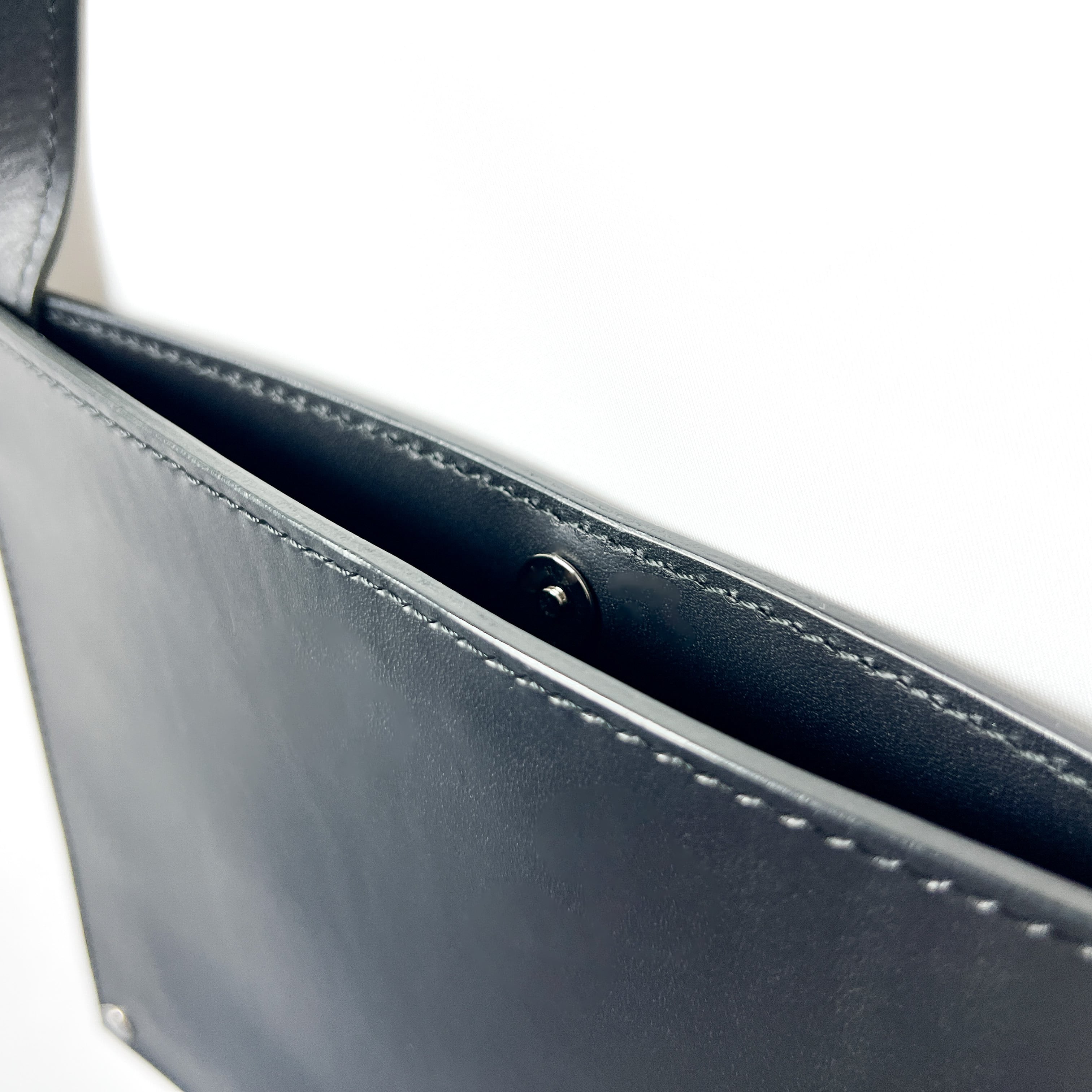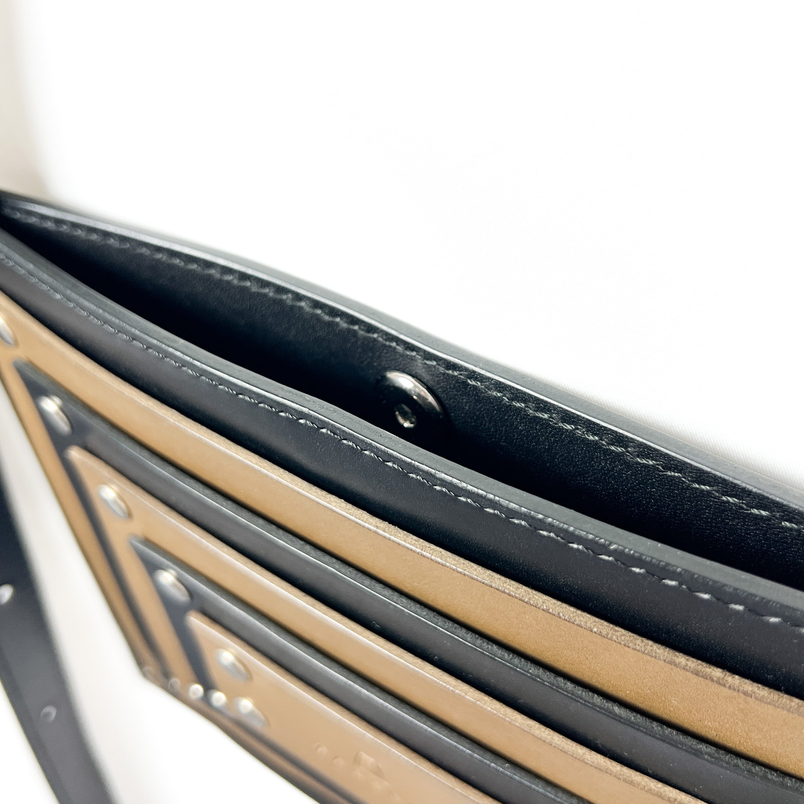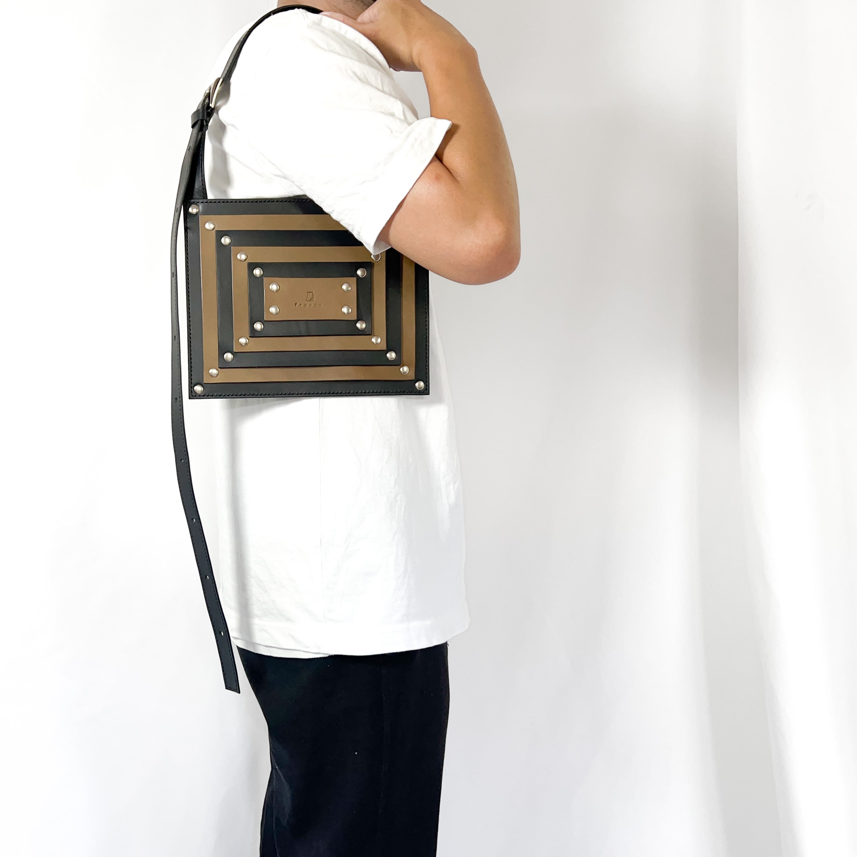 黒とグレーのイタリアンレザーで仕立てたパターンミニバッグ
