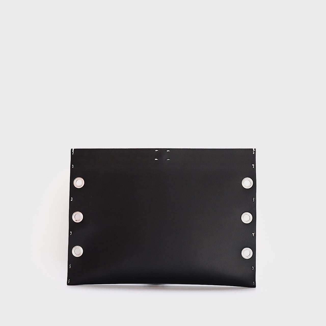 両サイドにハトメを並べたインパクトのあるハンドバッグ。