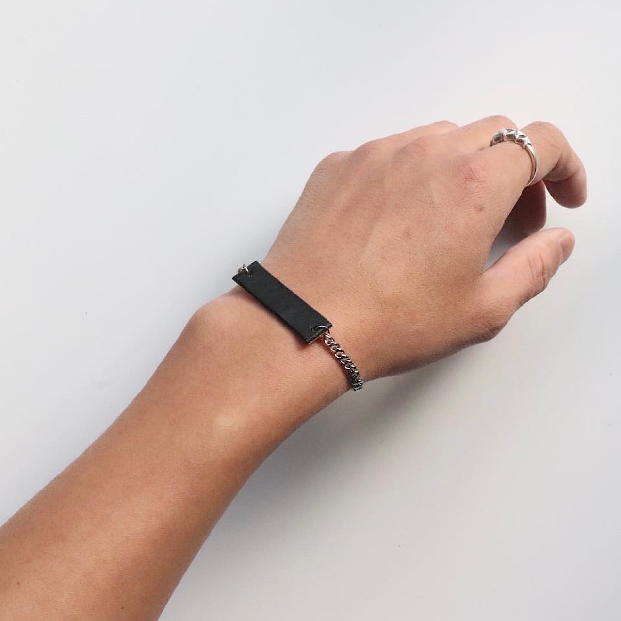 シルバー925素材を採用したレザーブレスレット。