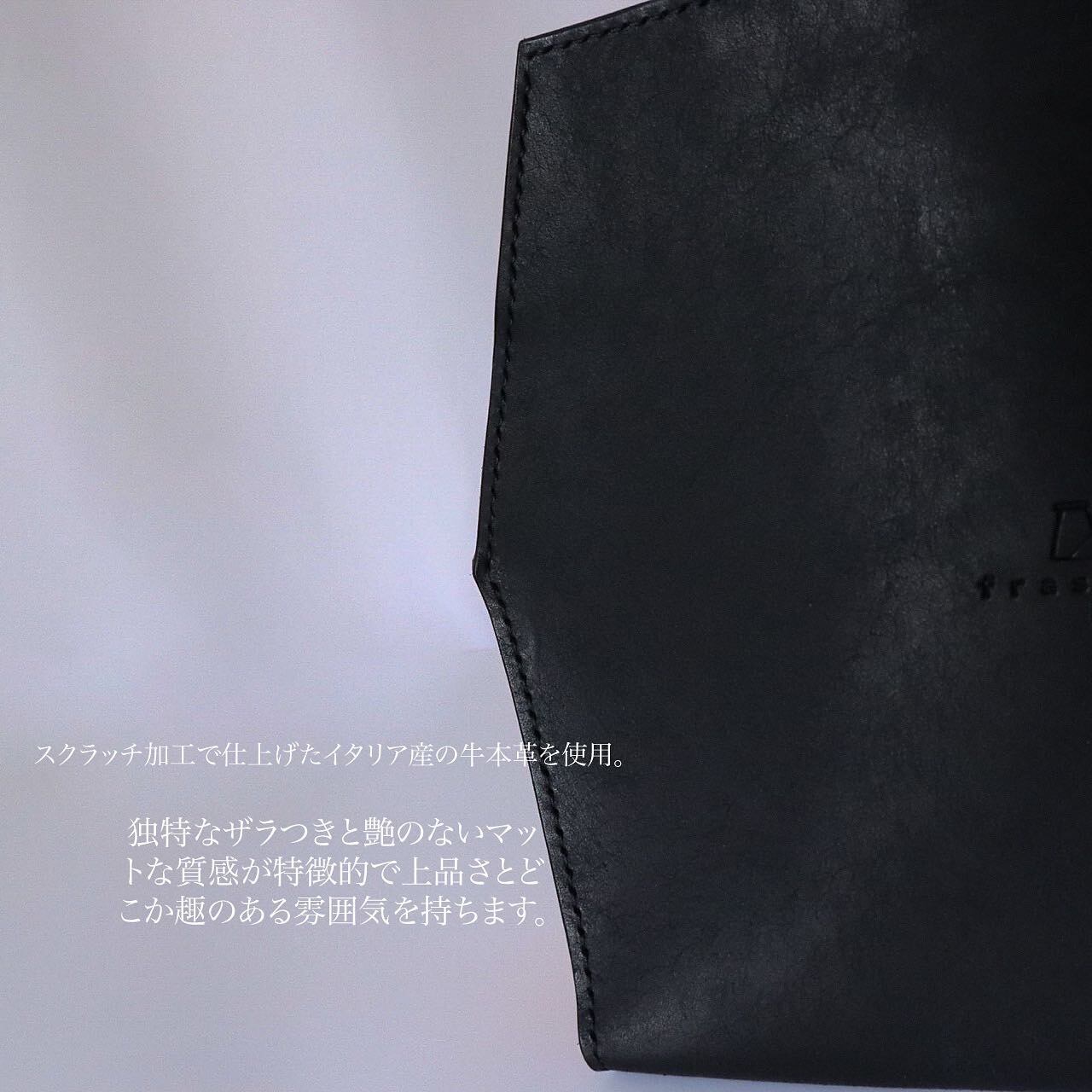 オイルの効いたレザーで表面はスクラッチ加工によりざらつきのあるタッチ感で